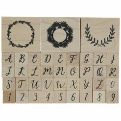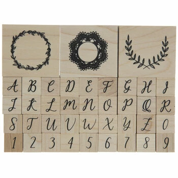 Enhance your paper crafts with personalized messages using Alphabet & Filigree Rubber Stamps! These statement stamps feature wood blocks and rubber stamp bases that display beautiful calligraphy letters and ornate floral wreaths and garlands. Use them to complete cards, envelopes, scrapbook pages, gift tags, and more!
