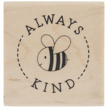 Stay positive and smiling with the help of this Always Bee Kind Rubber Stamp! Featuring a wood block for a grip, this stamp is shaped like a bee surrounded by lettering that spells “Always Kind.” When read together, the design says to always “bee” kind! Pair this stamp with your favorite ink pad and get to pressing it down on your next project. The finished results will have a look that’s sweet as honey!