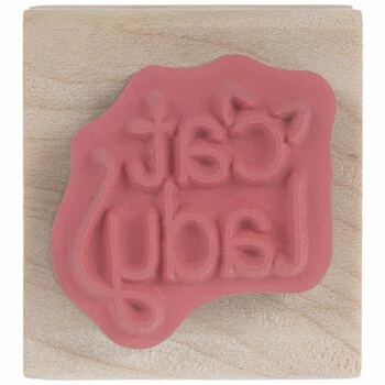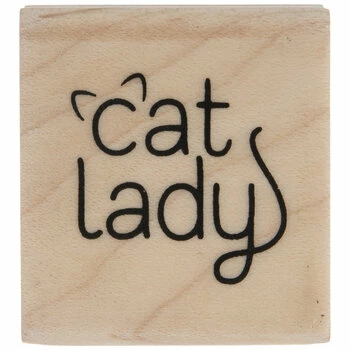 Highlight your paw-sitive interests with paper craft tools like this Cat Lady Rubber Stamp. This stamp features simple lettering and a pair of cat ears engraved onto a rubber surface. Pair it with your own ink to stamp cards, scrapbooks, and more for a merry, meow-y look!