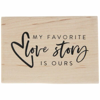 Boast your pride in your shared relationship by using Favorite Love Story Rubber Stamp. This stamp features a mix of lettering and a heart engraved onto a rubber surface. Pair it with your own ink to stamp cards, scrapbooks, and more!