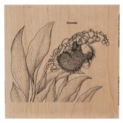 Create cute cards with characters your friends and family are sure to love with this Lily Of The Valley Rubber Stamp! Featuring a wood block for a grip, this stamp features the mouse character Amanda. The mouse is climbing a flower in a grassy patch and giving the blossom a big smell. Pair this stamp with your favorite ink pad and get to pressing it down on your next project! Everyone will love to see this mouse arrive in the mail.