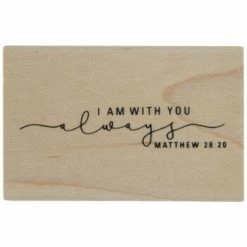 Add an inspiring and comforting excerpt from Scripture to your next project using Matthew 28:20 Rubber Stamp! This rubber stamp is attached to a wood block and features a message from the Bible, “I Am With You Always”. Simply press into ink and apply to your crafts for a unique touch of color and design!