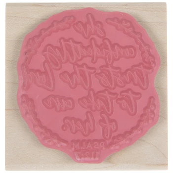 Bring humble reminders to your paper crafts with Psalm 112:7 Rubber Stamp. This stamp features a Bible verse and a floral wreath engraved onto a rubber surface. Pair it with your own ink to stamp cards, scrapbooks, and more!