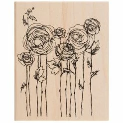 Create gorgeous paper crafts with fun floral stamps! Ranunculus Field Rubber Stamp is housed in a wood block and features a sketched outline of Rananculus flowers next to one another with tall stems. Press it into an ink pad to add fun designs to paper, scrapbook sheets, cards, and more!