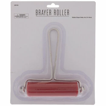 Roll out your creative paper crafting ideas with Rubber Brayer Roller. This brayer is designed with a red rubber roller with a red plastic center and a silver-colored metal wire handle attachment.Β