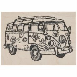 Take a trip back in time with this hippie van all over your paper crafts! You’ll have a righteous time using this Surf Bus Rubber Stamp. Featuring a wood block for a grip, this stamp is shaped like a van covered in flowers and hearts. The van even has a butterfly on the door and a peace sign on the front. Pair this stamp with your favorite ink pad and get to pressing it down on your next project! Your finished results will have lots of nostalgic style.