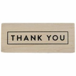 Make a great impression on your next paper crafting project using Thank You Rubber Stamp! This rubber stamp is attached to a wood block, making it easy and fun to use. The stamp leaves the design of capital, printed letters that read “Thank You” encased in a thin, rectangular outline. Simply press it into your favorite ink pad for an easy way to improve your design!