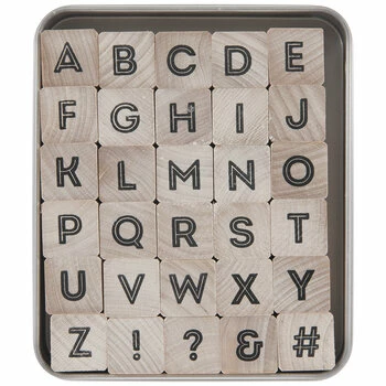 Label people, places, and things on your paper projects with our Uppercase Inline Sans Serif Alphabet Rubber Stamps! These rubber stamps come with the letters of the alphabet and four symbols. The font is a bold sans-serif type that boasts a thin negative-space line within the letters. They even come in a tin carrying case so you can take them on the road with you. Pair them with your favorite ink pad and use them on scrapbook pages, stationery, and more!